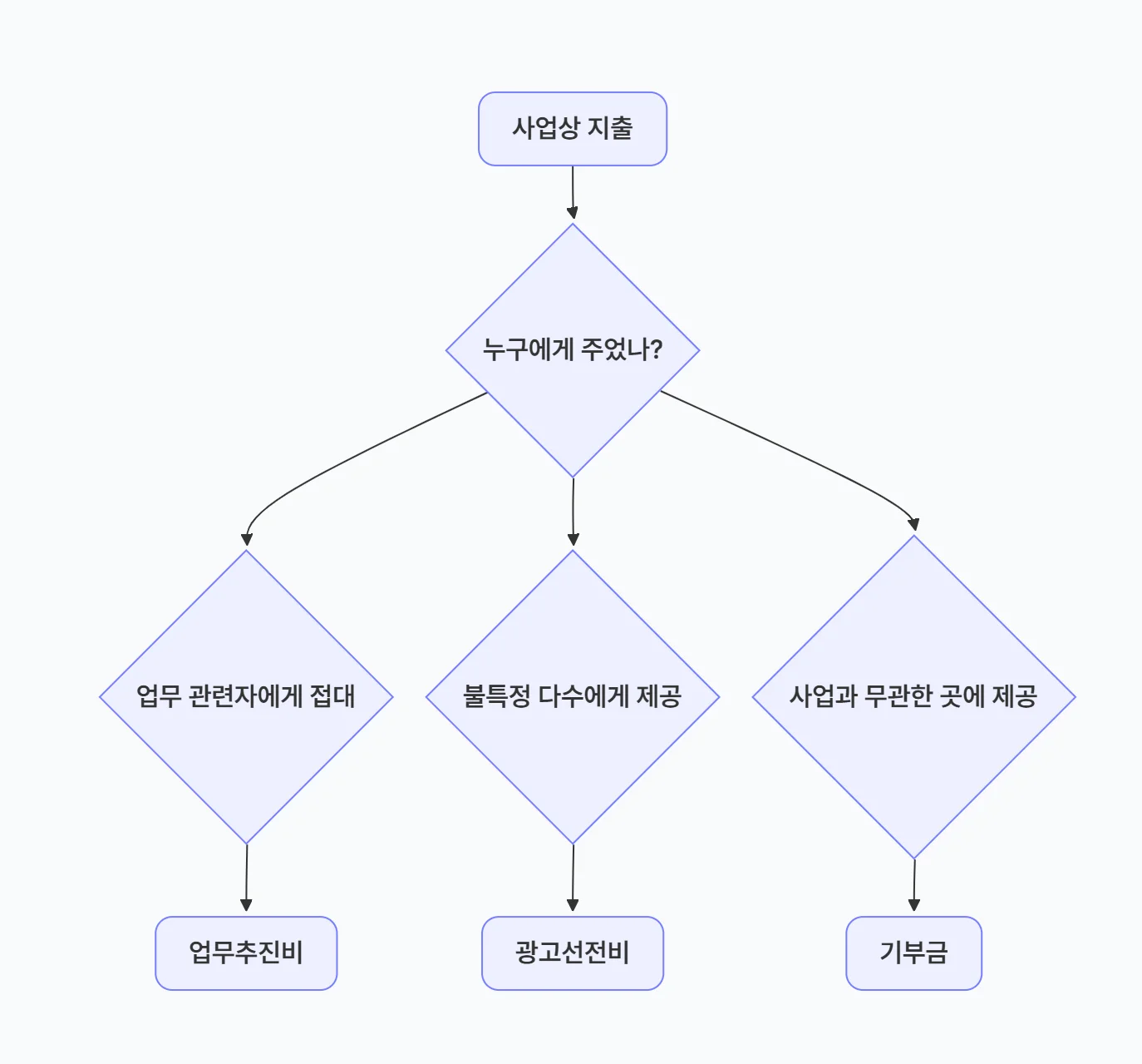 많은 분이 헷갈려 하시는 부분인데, 누구에게 어떤 목적으로 주었느냐에 따라 계정 과목이 달라집니다.