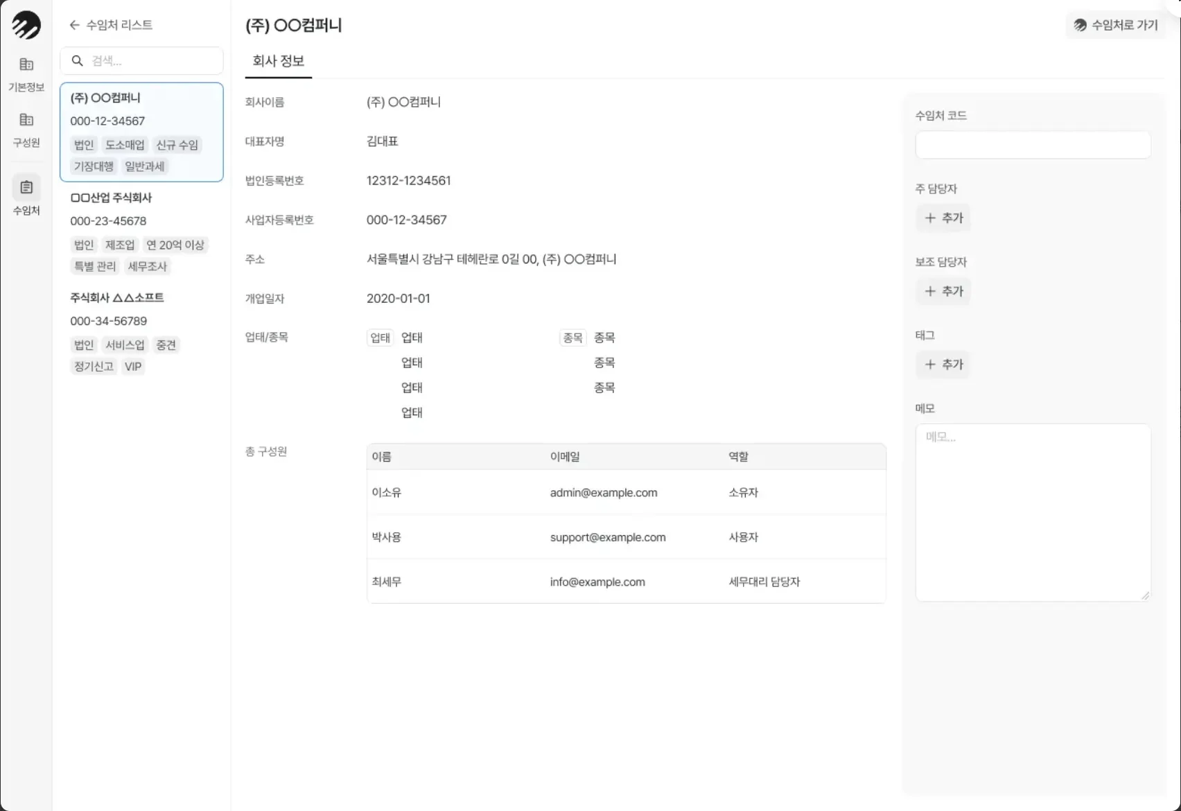수임처 목록을 홈택스에서 간편하게 불러오고, 회사 정보부터 모든 금융 데이터를 한 화면에서 조회할 수 있어 수임처가 늘어나도 품질이 떨어지지 않습니다.