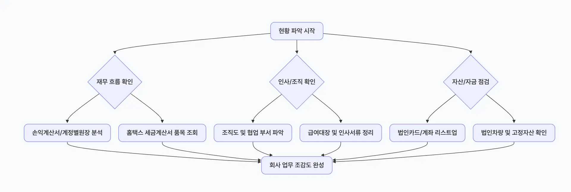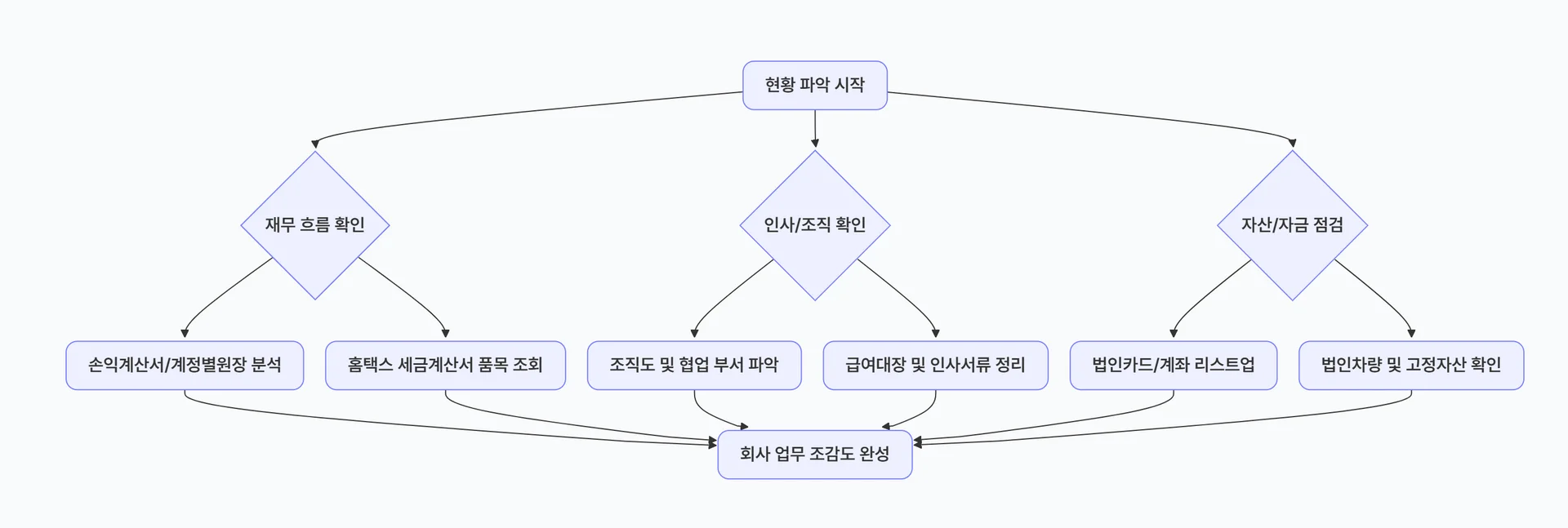 처음에는 확인해야 할 서류가 많아 복잡하게 느껴질 수 있습니다. 하지만 이렇게 한 번 제대로 현황을 파악해 두면, 앞으로 어떤 업무가 주어져도 당황하지 않고 우선순위를 정해 처리할 수 있는 든든한 기초가 될 거예요.