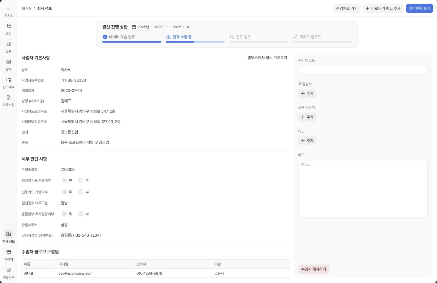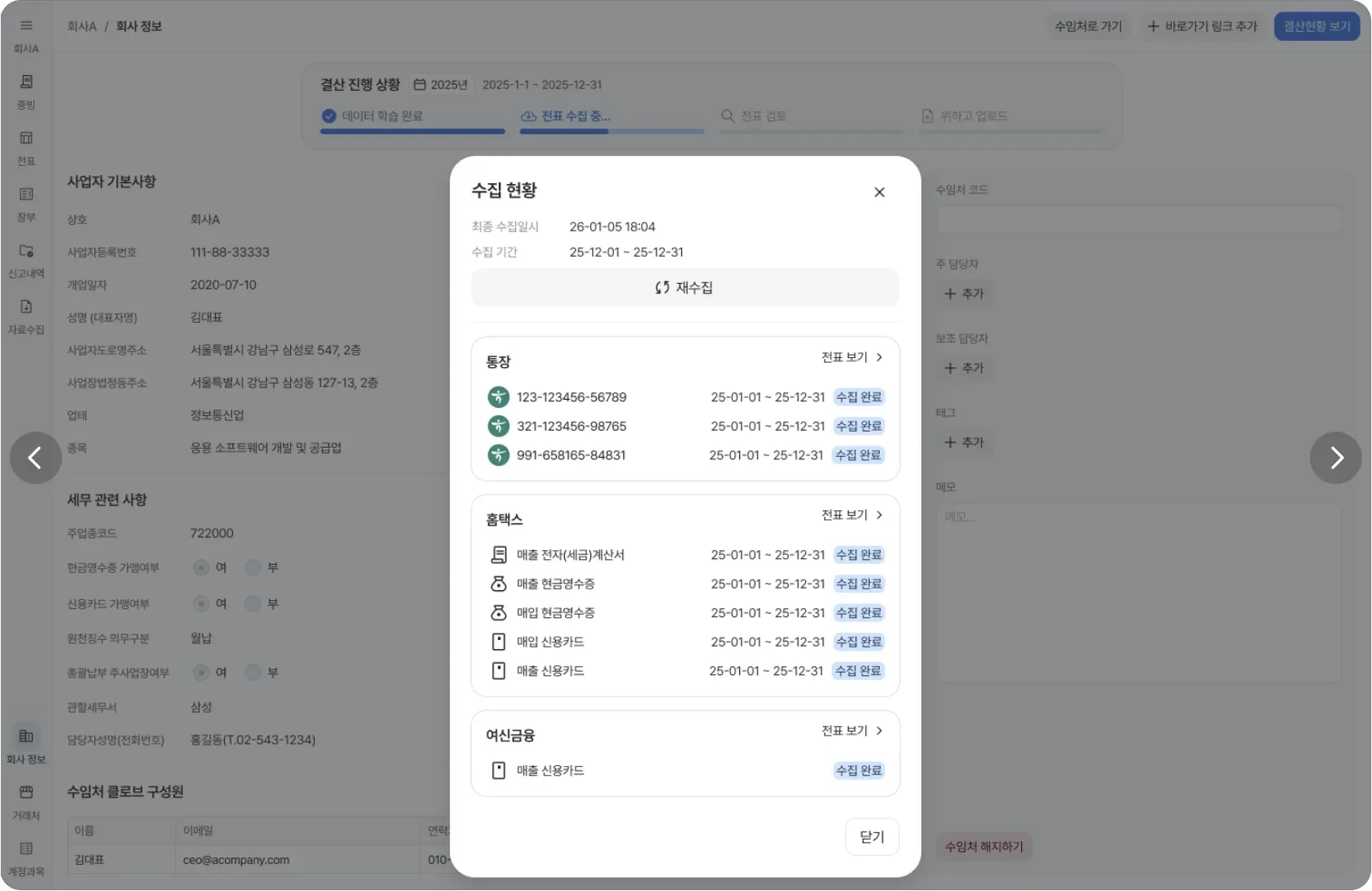 통장·카드·세금계산서 증빙 실시간 자동 수집 🛠️