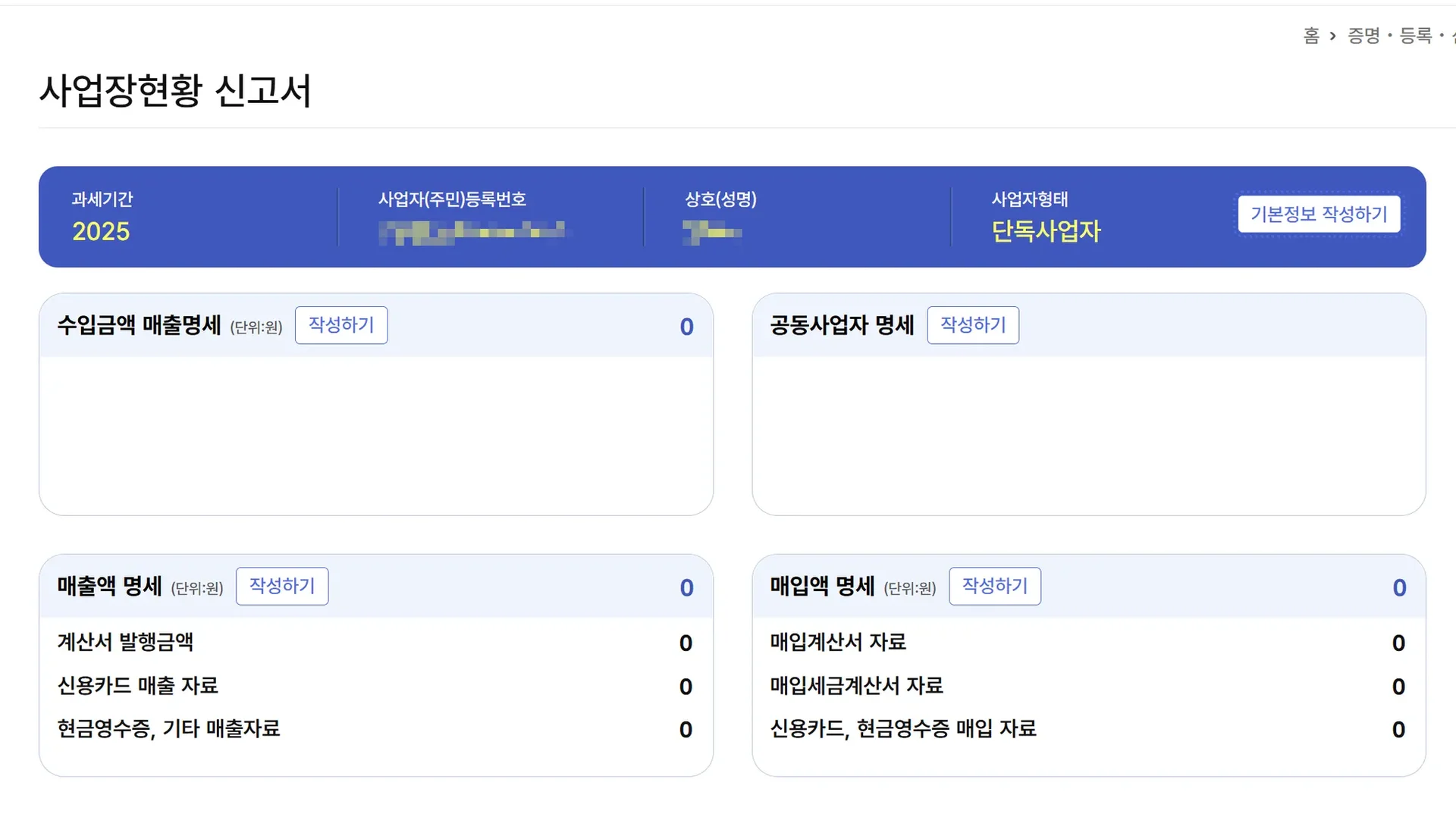 사업장현황신고: 매년 1월 1일 ~ 2월 10일 (2025년 귀속분은 2026년 2월 10일까지)