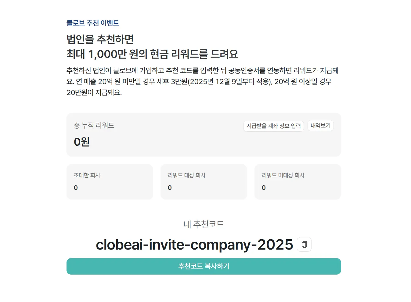 주변에 이런 회사가 있다면, 지금 바로 내 추천 코드를 확인하고, 대표님, 기업 재무 담당자님께 클로브AI를 추천해주세요!