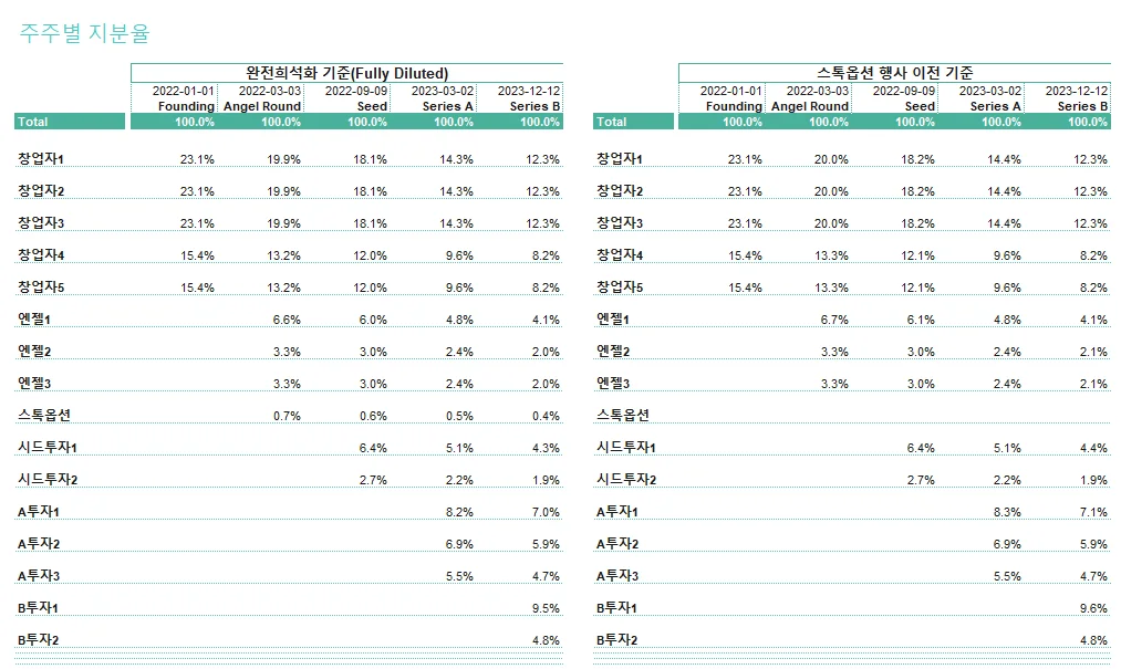 스타트업 지분율 계산에 꼭 필요한 캡테이블(Cap Table)
