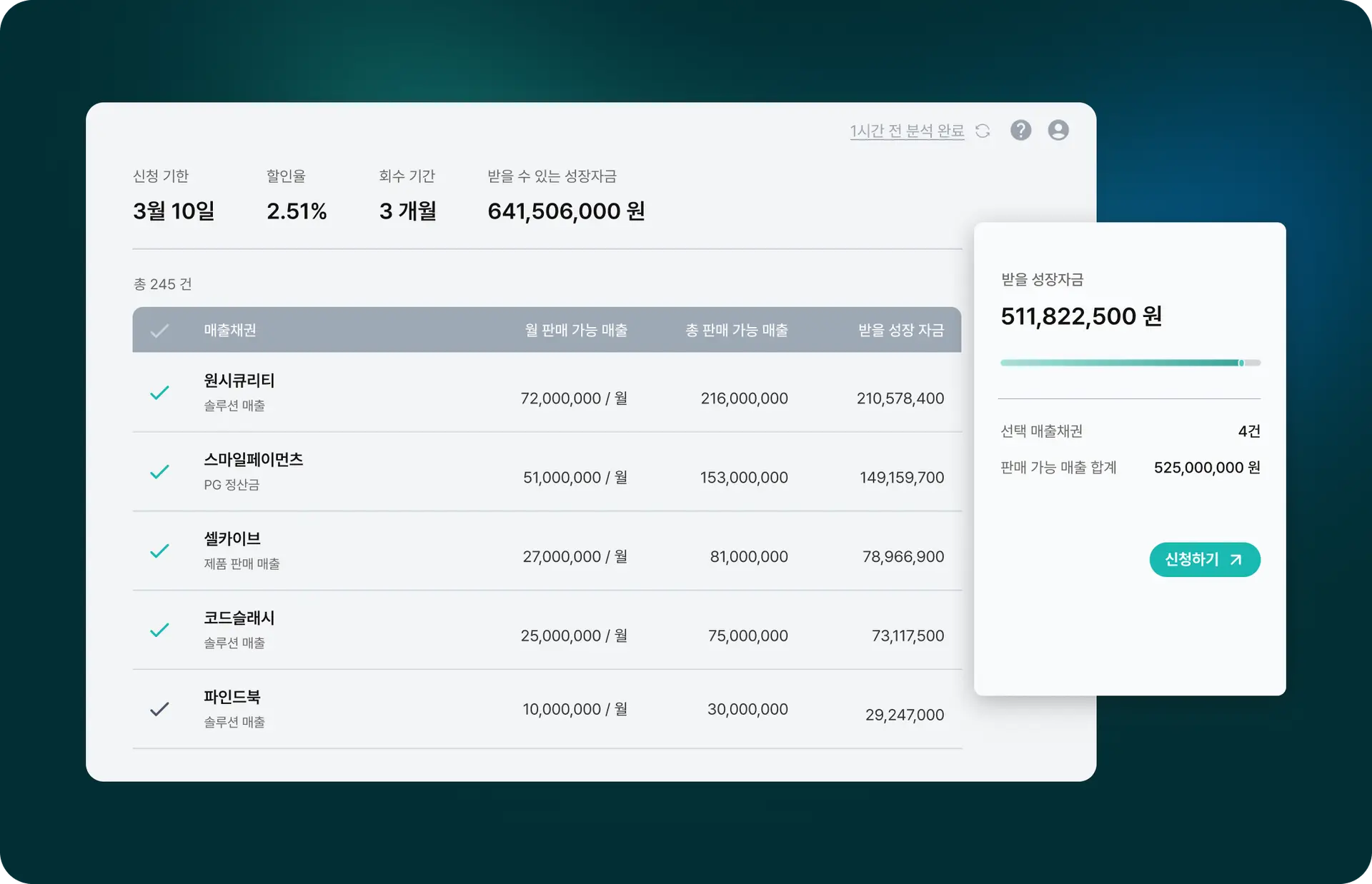 우리 회사의 미래 매출로 얼마의 성장 자금을 확보할 수 있는지, 지금 바로 클로브 금융에서 무료로 확인해보세요.