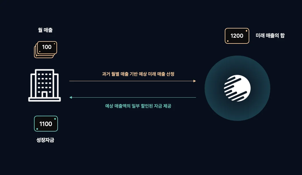 A. 아직 발생하지 않은 미래 매출을 데이터로 예측해, 해당 매출을 담보로 자금을 선지급받는 금융 방식입니다.