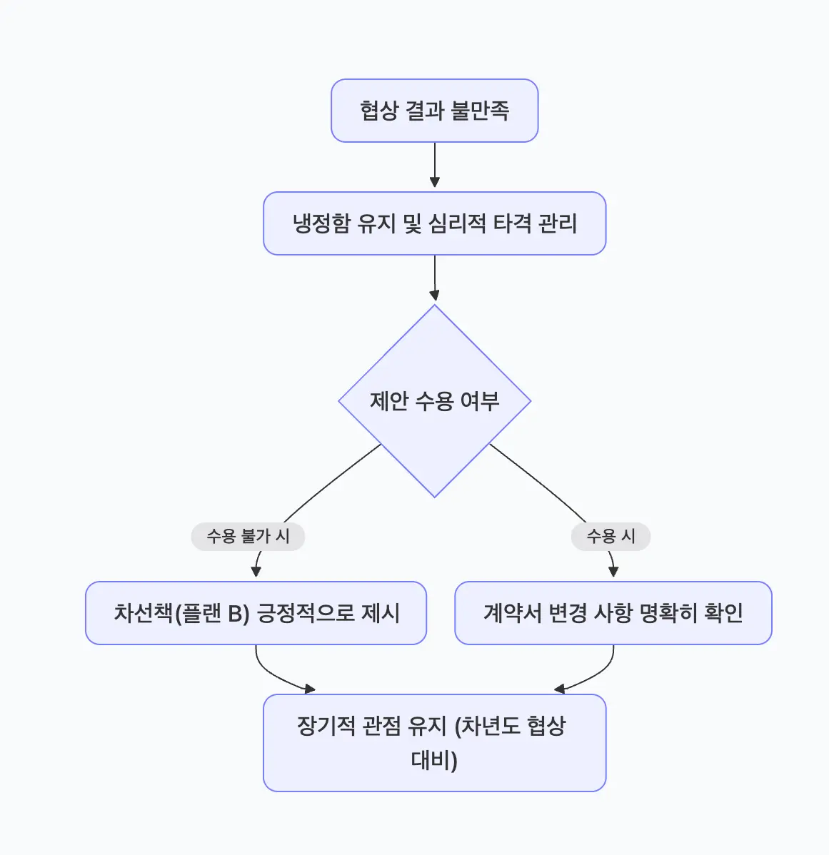 장기적 관점: 현재 협상이 만족스럽지 않더라도, 차년도 협상을 기대하며 장기적인 커리어 관점에서 대응하는 것이 현명합니다.