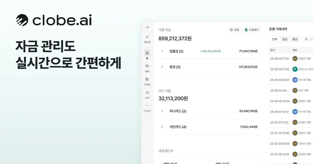 실시간 금융 데이터 통합: 모든 은행 및 카드 데이터를 즉시 연결하여 마케팅 집행과 현금 흐름을 동시에 확인할 수 있어요