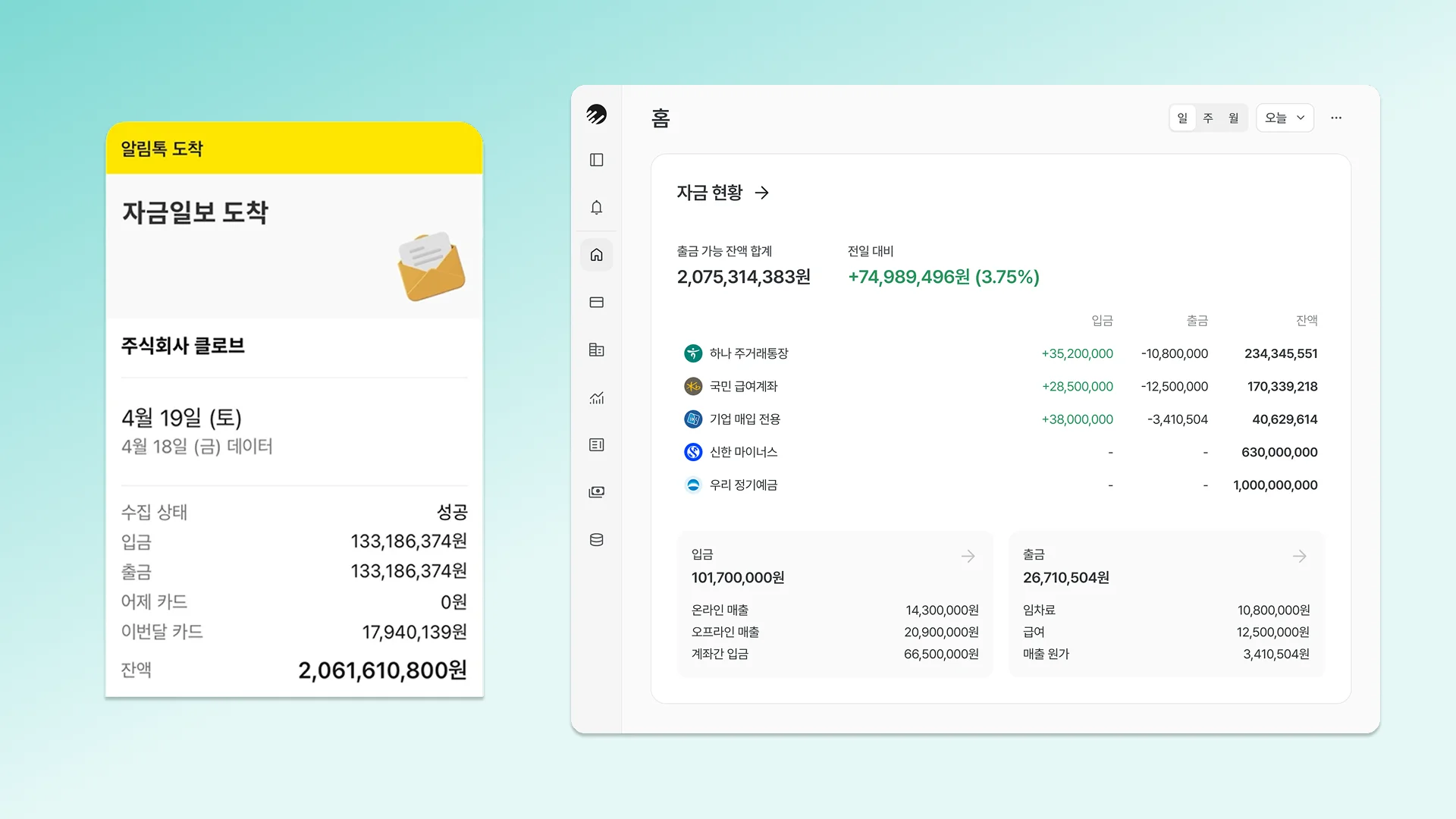 클로브AI를 사용하는 팀은 매일 아침 8시, 자금일보를 이메일이나 카카오톡으로 자동 수신합니다. 전일 기준 계좌 잔액, 주요 입출금 내역, 현금흐름 요약을 한눈에 확인할 수 있습니다.