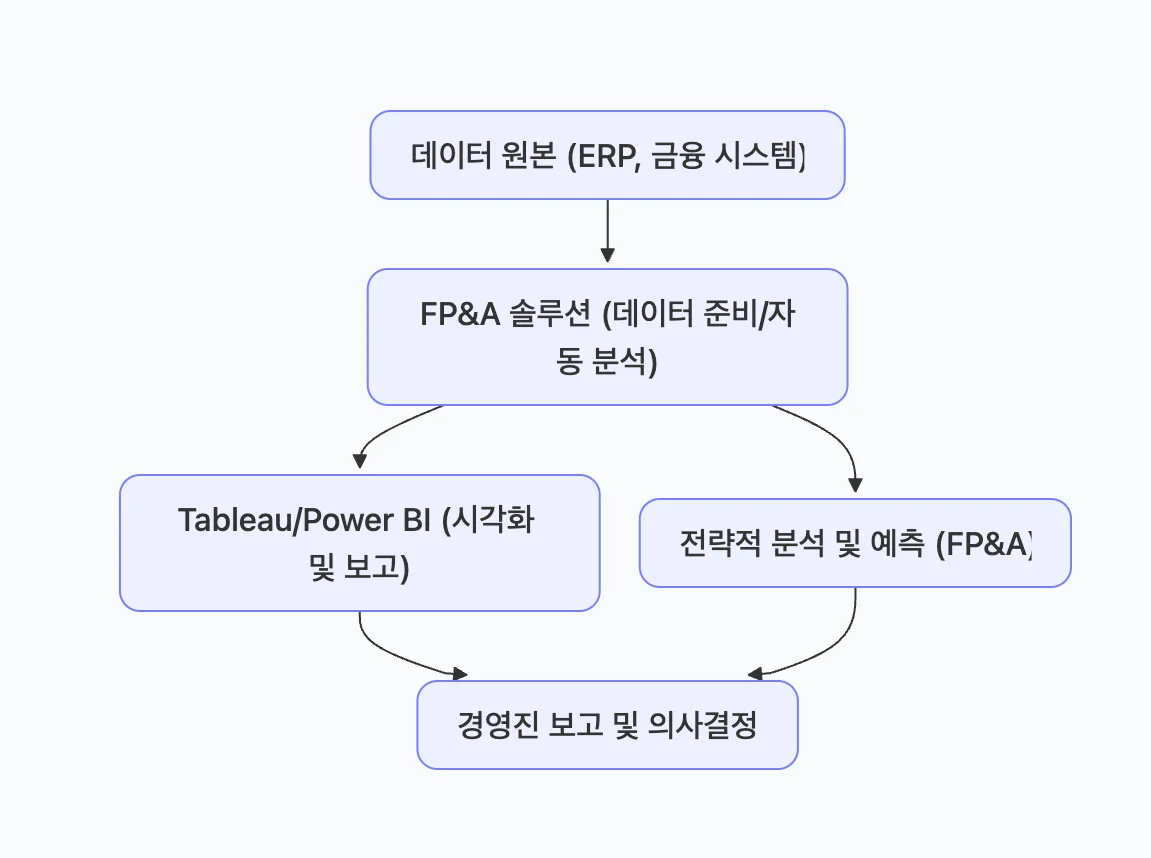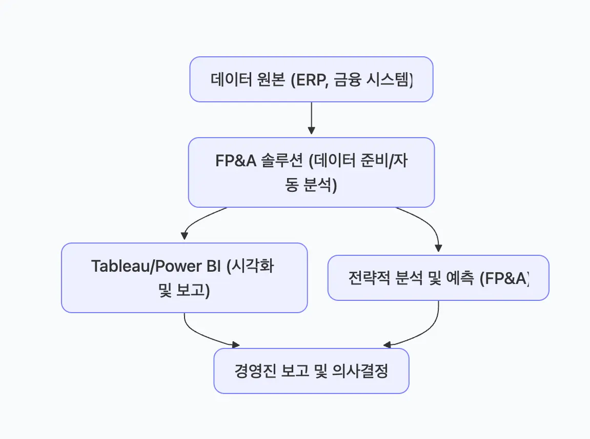 따라서, BI 도구는 범용적인 데이터 시각화 및 보고서 작성에 활용하고, FP&A 전문 솔루션은 재무 데이터의 준비 자동화와 전략적 분석에 집중하는 상호 보완적인 구조가 가장 효율적입니다.