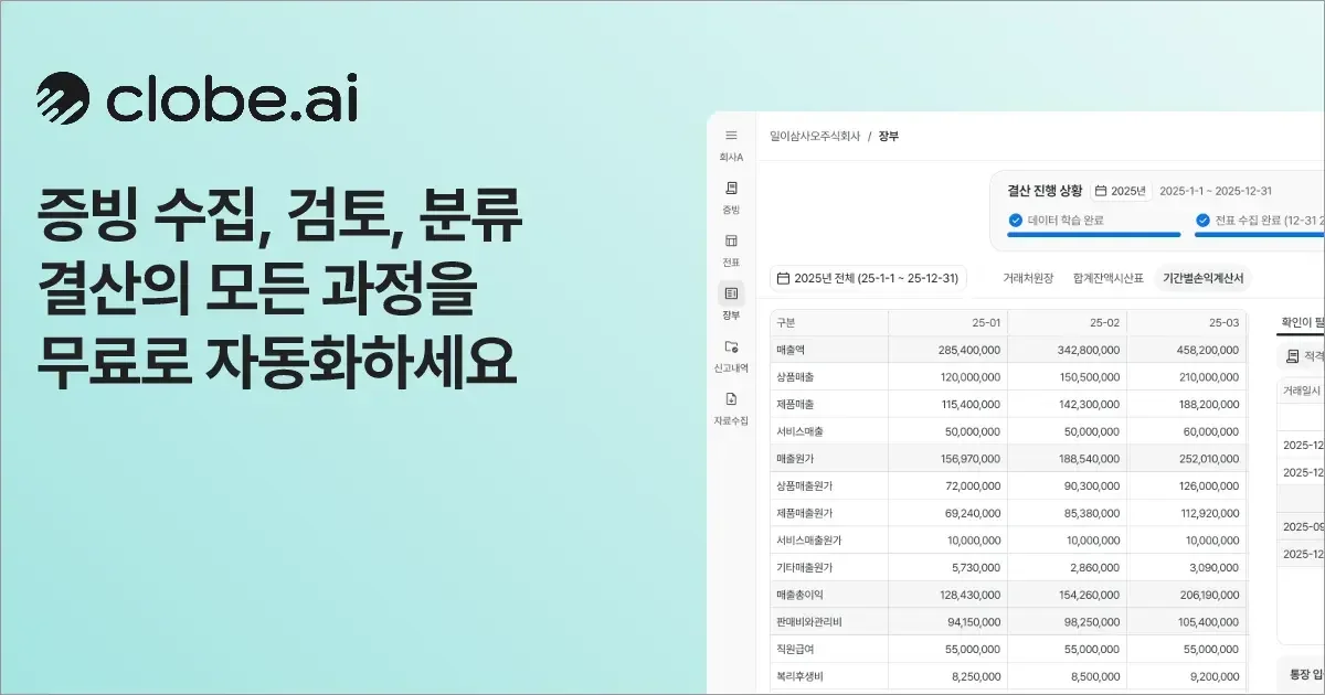 클로브 커넥트(Clobe Connect)는 세무대리인과 수임고객을 잇는 AI 기반 결산 자동화 솔루션입니다.